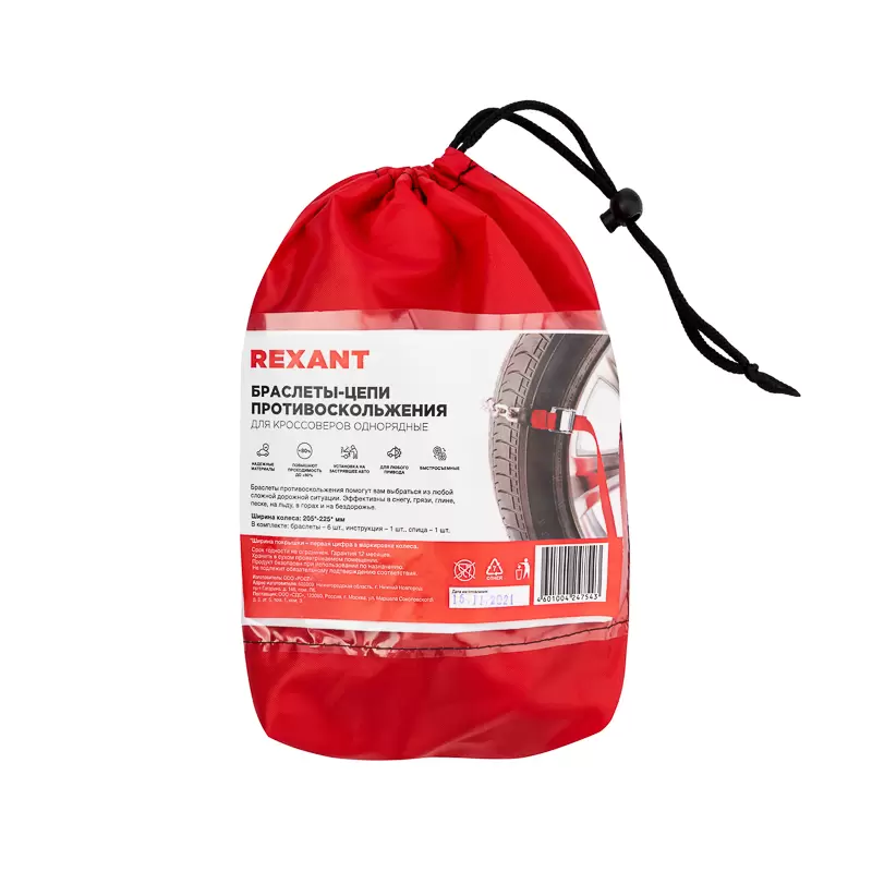 Цепи (браслеты) противоскольжения REXANT для кроссоверов, однорядные, к-т 6 шт.